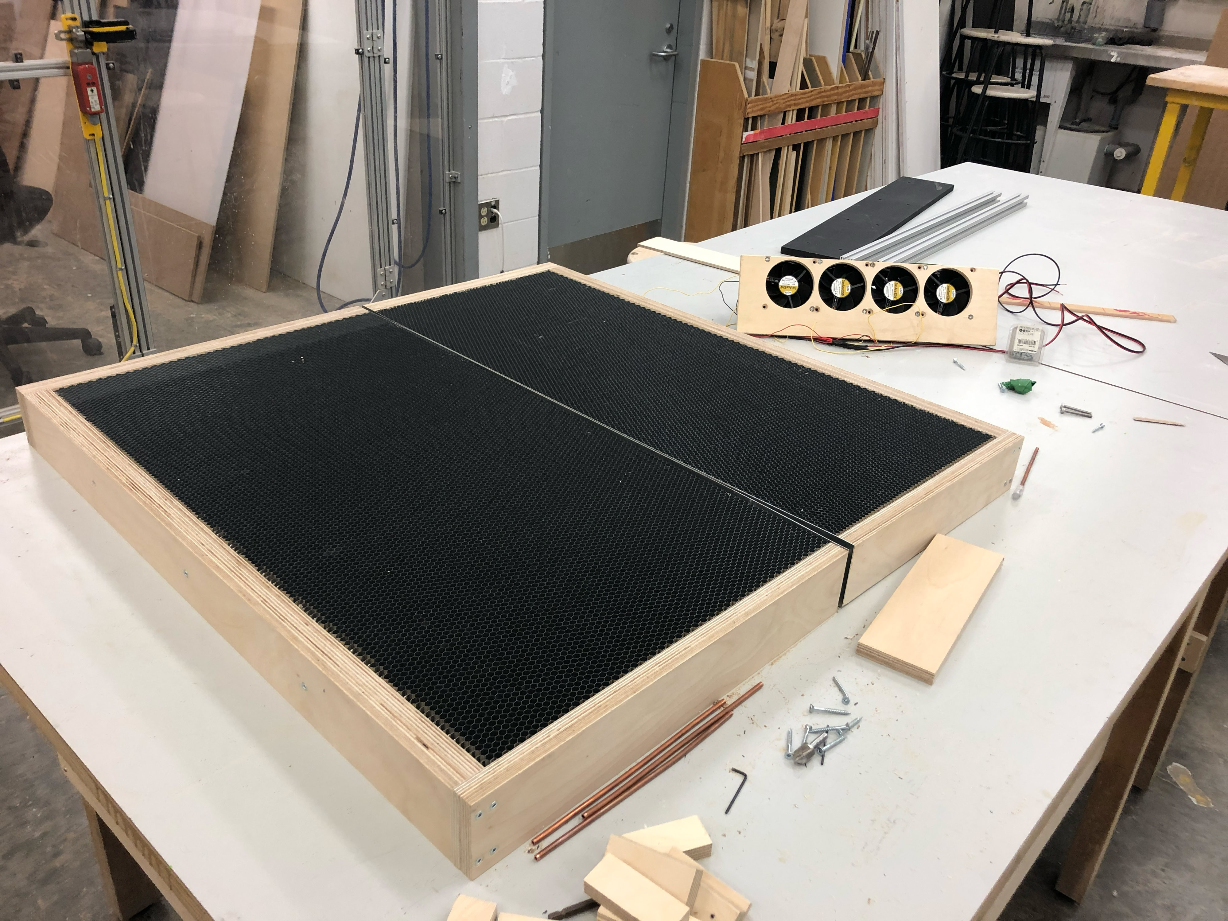 12 • Aluminum honeycomb panel in its frame, before being installed on the apparatus.